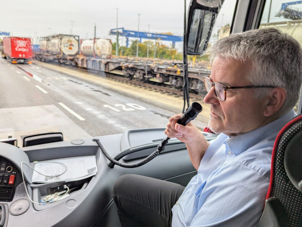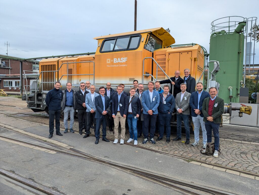 Further meetings of rail-related entrepreneurs in the VSL have since taken place at the world’s largest chemical plant, BASF in Ludwigshafen, and at the logistics service provider Transco in Singen. At BASF, the division members were able to get an impression of the highly automated tank container facility, which opened in 2018. Up to 2,000 containers – each weighing up to 75 tonnes – can be stored there in up to six stacks. Delivery can be made either by rail on special container wagons or by road. The highlight: no driver is required for internal transport by road, as the containers are mounted on a special chassis and operate autonomously as robotic vehicles (AGVs). In the immediate vicinity of BASF is the Ludwigshafen Combined Transport Terminal (KTL), in which Kombiverkehr holds a 20 per cent stake. The KTL handles up to 25 trains per day with its 160 employees. Managing Director Harald Schlegel spoke about the company’s efforts in terms of sustainability and took the VSL delegation on a bus tour of the three modules of the terminal – one of the largest hubs for intermodal transport in Germany.